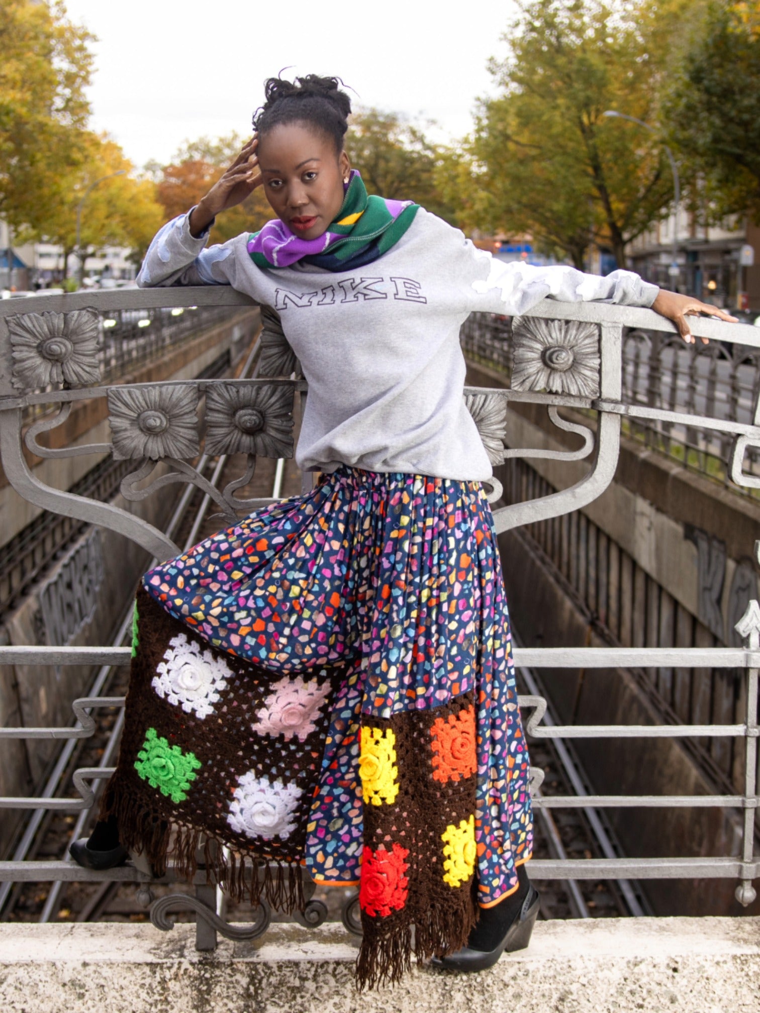 Patchwork Pant/Skirt with Multicolor Print and Crochet Panels